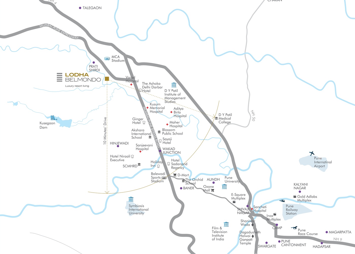 Lodha Belmondo is strategically located on the Mumbai-Pune expressway, Lodha Belmondo is situated on the banks of Pavana Lake. Remote enough to experience the serenity and peace of nature without having to compromise on the benefits of a city life, Lodha Belmondo offers everything you could ask for and more.Come experience an international luxury resort lifestyle at Lodha Belmondo.
